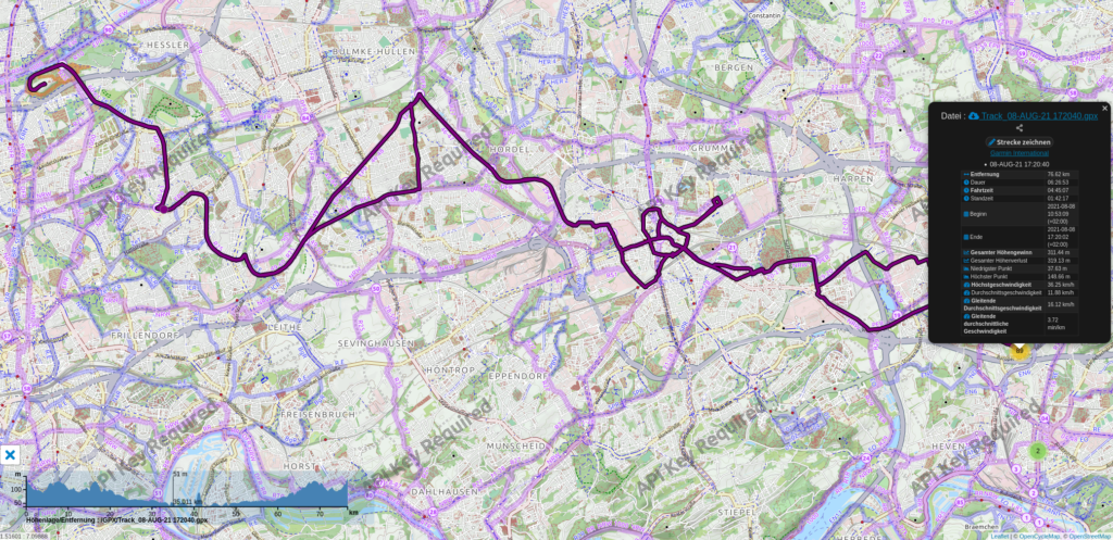 In den Tagen danach gab es noch eine knapp 90Km Tour über Dortmund City richtung Norden an der Emscher vorbei bis zur Halde Hoheward und über die Erzbahntrasse zurück.