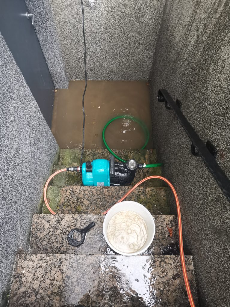 Dann war da noch das Unwetter “Bernd” oder wie es hieß….es hat uns ein Glück nur etwas Wasser VOR der Kellertür gebracht, welches man relativ schnell abpumpen konnte.