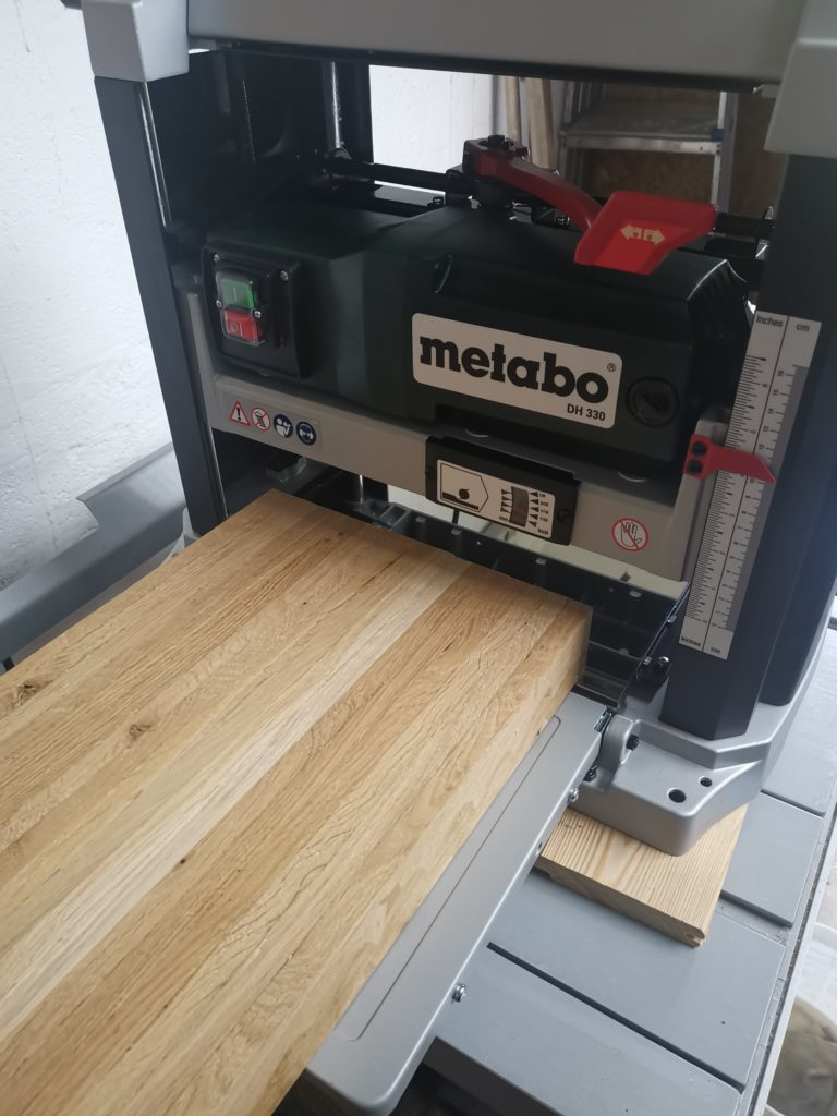 Ansonsten gab es in den letzten Wochen noch ein bischen neues Werkzeug, einen Dickenhobel, einen Metabo DH330, geiles Gerät! Mehr muss man dazu nicht unbedingt sagen. Er tut was er tun soll, er tut hobeln, und zwar gut hobeln ;) .
