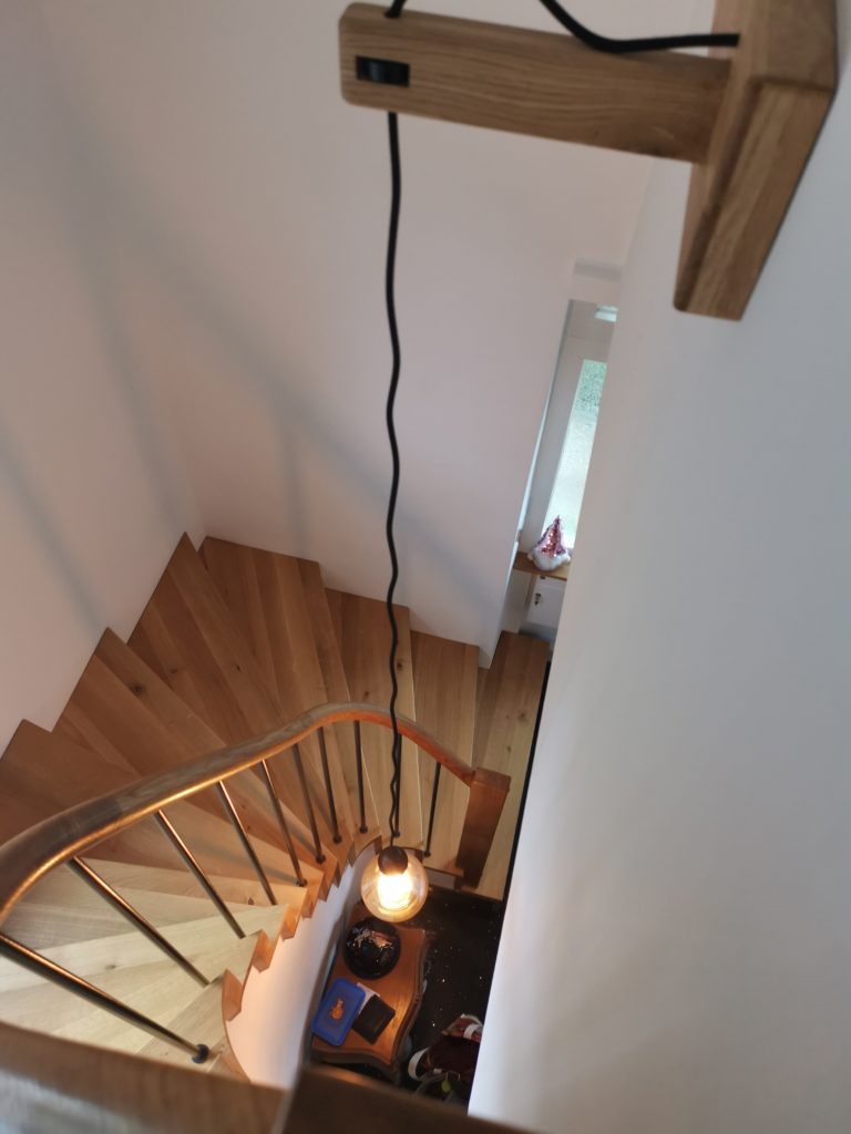 Dank dem Dickenhobel konnte ich dann relativ spontan endlich unsere Lampe im Flur bauen. Dazu habe ich lediglich ein wenig Eichenholz benötigt, davon hab es noch ausreichend vom Parkett, frisch verleimt wurde daraus die perfekte Stärke die ich benötigte um die Lampe zu bauen. Seht selbst: