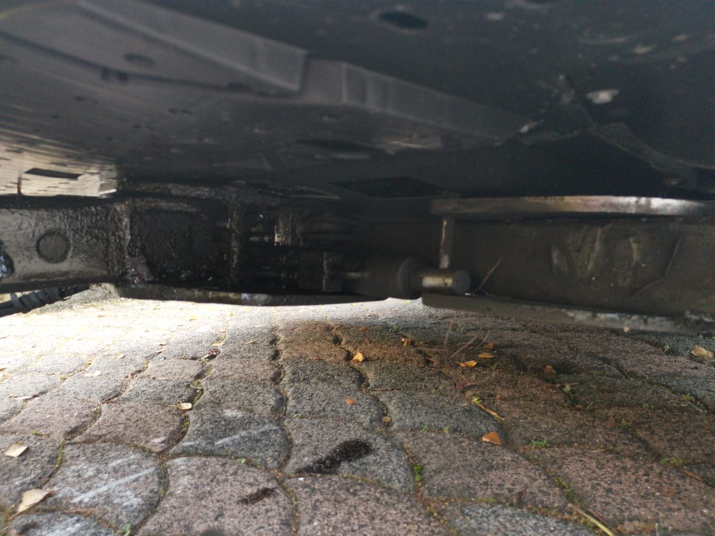 Nach einigen Versuchen den Wagen höher zu bekommen um den Greifarm nun final um die Reifen zu positionieren, hat dies nun irgendwie geklappt…beidseitig wurde mit Wagenhebern gearbeitet.