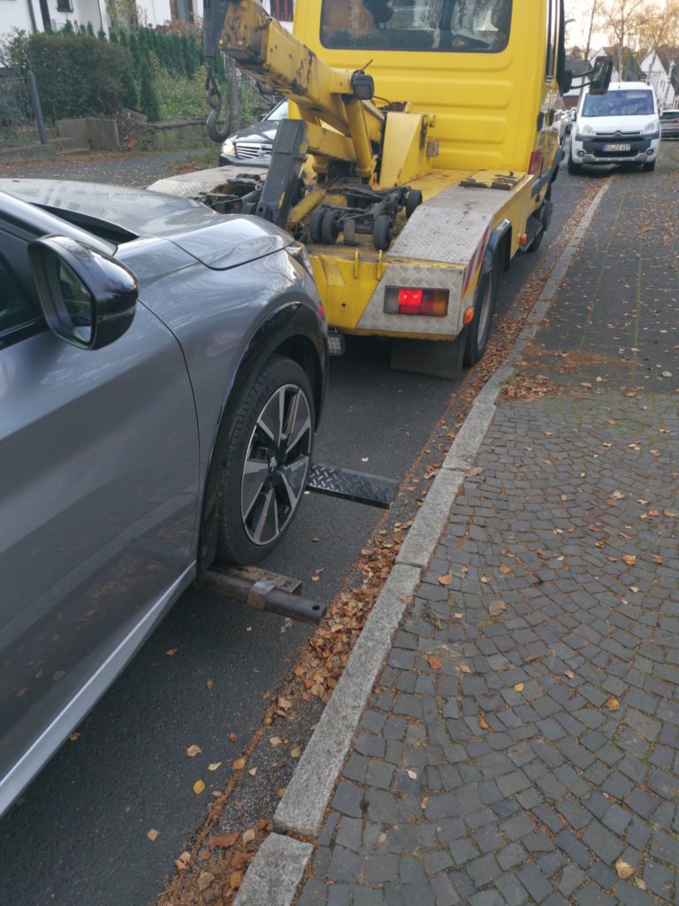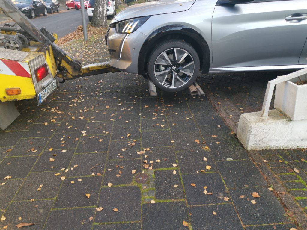 In tatsächlich der rund 60 Minuten nach dem Anruf (Systemfehler Elektroantrieb) stand dann plötzlich der besagte Abschleppservice vor unserem Haus.