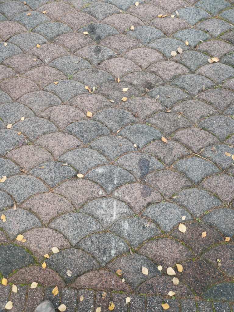 Dann fing die Tortur an. Er schob den Greifarm über den Bürgersteig auf unsere Auffahrt. Dabei beschädigte er die dortigen Steine duch tiefe kratzspuren und zu allem Überfluss lief Öl aus diesem Greifarm auf unsere Auffahrt.