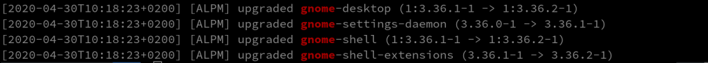 Since the last update on my Archlinux system of gnome-desktop, gnome-settings-daemon, gnome-shell and gnome-shell-extensions this morning (April 30th 2020)