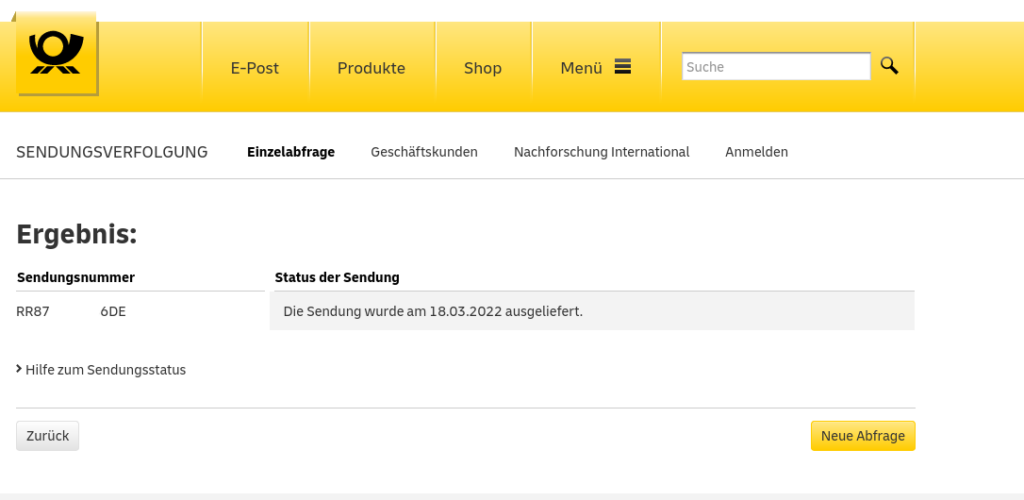 Das Einschreiben an Herrn Jorrit van der Meulen wurde erfolgreich am 18.03.2022 zugestellt.