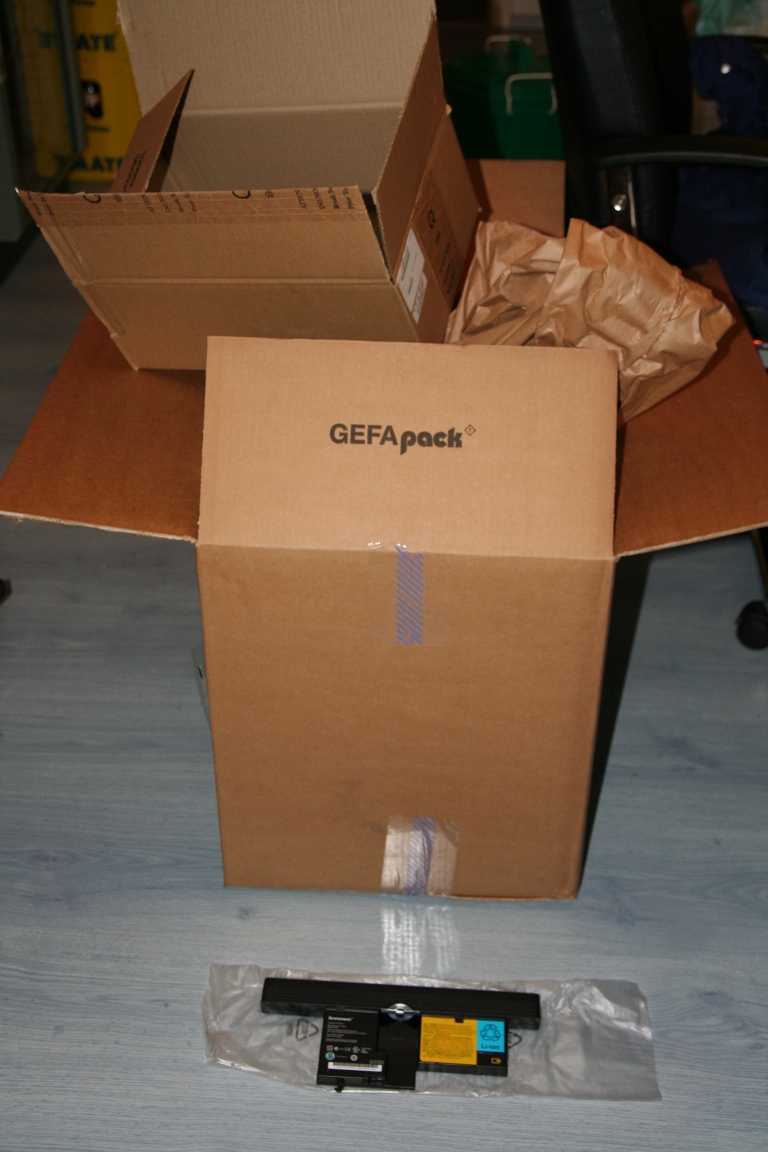 Heute kam der Akku für mein x60T an welchen ich erst gestern bestellt hatte (Garantieaustausch mit optionaler Rücksendung). Ich war etwas verwundert als der UPS Mann ein Paket die Treppe runter gewuchtet hat, wo man ohne Probleme fünf x200s mit Verpackung hätte unterbringen können.